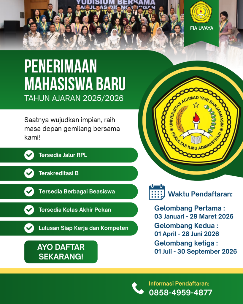 • PENERIMAAN MAHASISWA BARU FIA UNIVERSITAS ACHMAD YANI BANJARMASIN